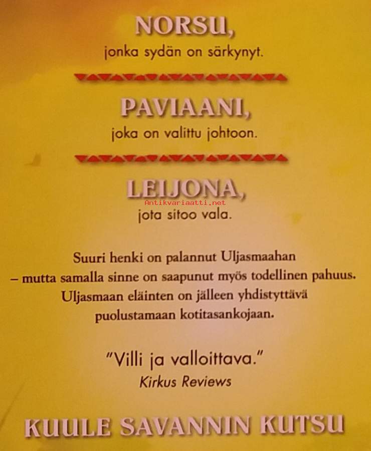 Todellinen pahuus on saapunut Uljasmaahan, ja vain toivo voi sen torjua. Uusi Suuri isä, nuori paviaani Oka, aikoo tehdä Uljasmaasta rauhallisen asuinpaikan kaikille eläimille sekasortoisten aikojen jälkeen. Dimensiot 22 ¤ 14 cm.