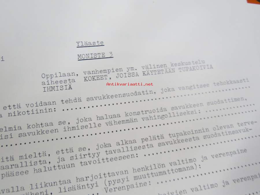 ANT Tupakka - SOK Koulupalvelu oppivälinesarja tupakoinnin vastaiseen kampanjaan 1973 -erikoiset havaintovälineet ja selostukset mm. hyönteisten lamauttamisesta...