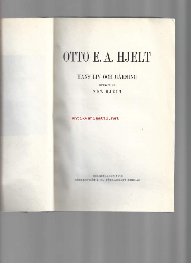 Otto E. A. Hjelt : hans liv och gärningKirjaHjelt, Edv , 1855-1921 ; Söderström & C:o , kustantajaSöderström 1916.Näytä muut versiot (2)Genre elämäkerratUlkoasu Käytettävissä filmikortteina KansalliskirjastossaXI, [1], 304 s.Kieli ruotsiJulkaisija Helsingfors : Söderström, 1916.Aiheet Hjelt, Otto Edvard August, → 1823-1913. Hjelt, Otto Edvard August. lääkärit Lisätiedot Edv. Hjelt