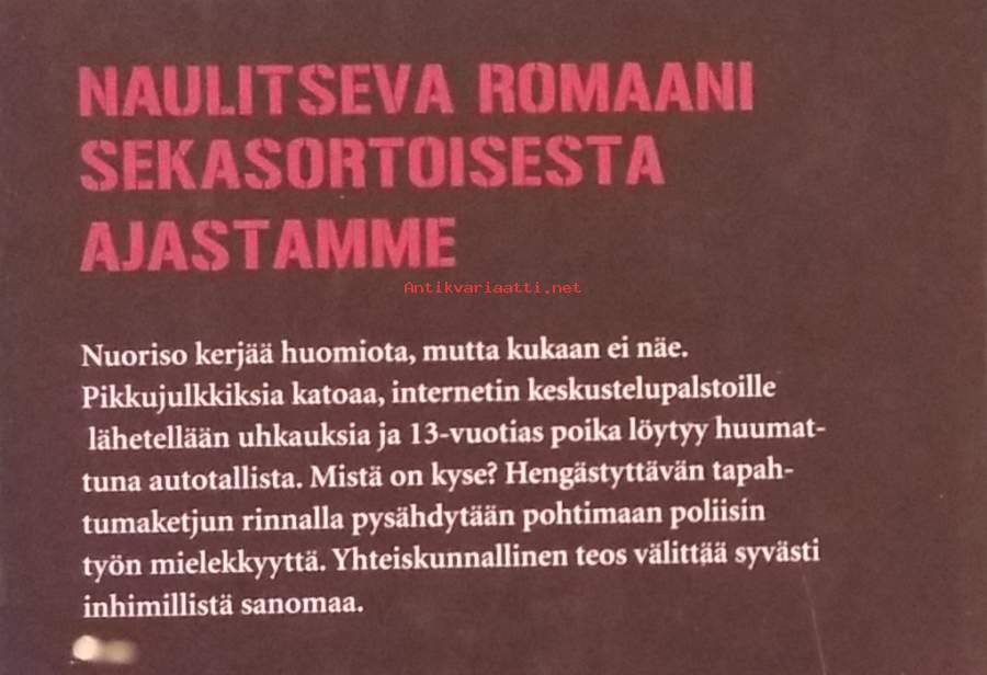 Nuoriso kerjää huomiota, pikkujulkiksia katoaa, internetissä lähetellään uhkauksia, 13 vuotias poika löydetään autotallista huumattuna jne. Mistä on kyse. Yhteiskunnallinen teos välittää syvästi inhimillistä sanomaa.
