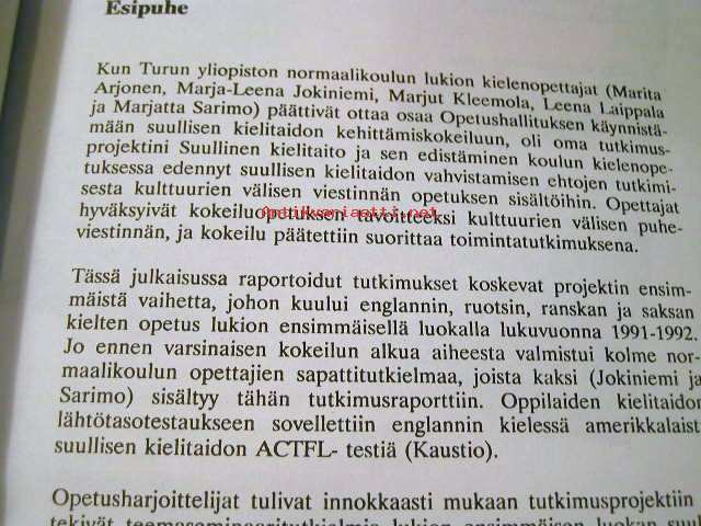 Vieraiden kielten puheviestinnän kehittäminen lukion kieltenopetuksessa. 1992. Julkaisusarja B: 38.