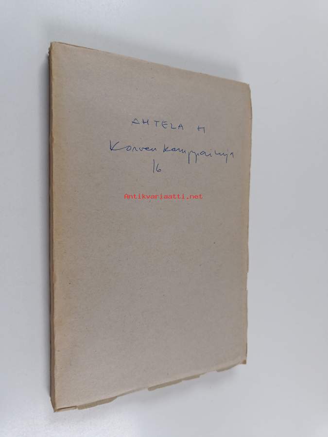 Hyvä. Tarkempi kuntoluokka: K3- ; Hieman kulumaa, hieman nuhruisuutta, sivut vielä leikkaamatta auki eli lukematon kirja. teoksen tekijä ja nimi käsin kirjoitettu etukanteen