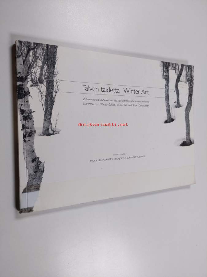 Koko nimi: Talven taidetta : puheenvuoroja talven kulttuurista, talvitaiteesta ja lumirakentamisesta = Winter art : statements on winter culture, winter art, and snow constructionMuu(t) tekijä(t): Timo Jokela, Maria Huhmarniemi ym.Sarja: Lapin yliopiston taiteiden tiedekunnan julkaisuja. D, Opintojulkaisuja 6Asiasanat: sadut, rakentaminen, valokuvataide, matkailu, kuvataide, ympäristöestetiikka, veistokset, ahdistus, talvi, jää, ympäristötaide, lumi