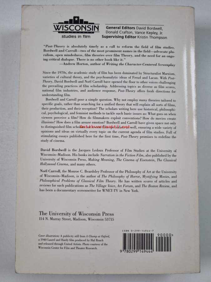 Muu(t) tekijä(t): Noel Carroll, David BordwellSarja: Wisconsin studies in filmAsiasanat: psykologia, teoriat, estetiikka, elokuvataide