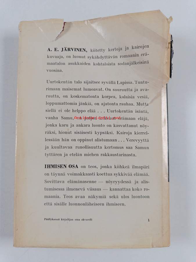 Hyvä. Hieman kulumaa kansissa, selkämyksessä hieman vinoutta. Kansipaperin kunto: joitain repeämiä/kulumaa