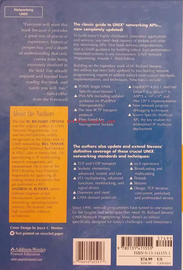 UNIX - Network Programming. The sockets Networking API. Volume 1. Third Edition. ( Tietokoneet, ohjelmointi, tietotekniikka )