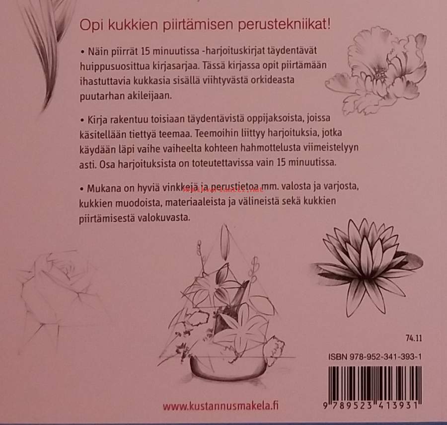 Kirja rakentuu toisiaan täydentävistä oppijaksoista, joissa käsitellään tiettyä teemaa. Teemoihin liittyy harjoituksia, jotka käydään läpi vaihe vaiheelta kohteen hahmottelusta viimeistelyyn asti.. Mukana on vinkkejä ja perustietoa valosta ja varjosta, kolmiulotteisuudesta, perspektiivistä sekä materiaaleista ja välineistä. Pienet erikoisharjoitukset syventävät piirustustaitojasi edelleen. Kuvitettu. Dimensiot 22 ¤ 17 cm.