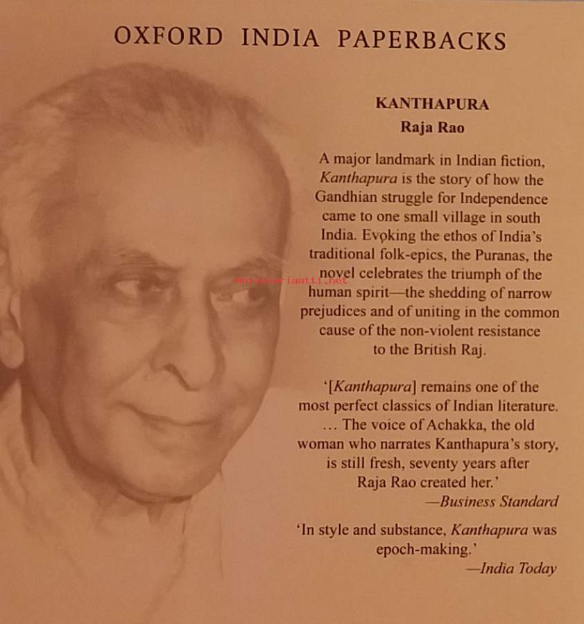 A major landmark in Indian fiction Kanthapura is the story of how the Gandhian struggle for Independence came to one small village in south India. This is the story of how Mahatma Gandhi's struggle for independence from the British came to a typical village, Kanthapura, in South India. Dimensiot 21 ¤ 14 cm.