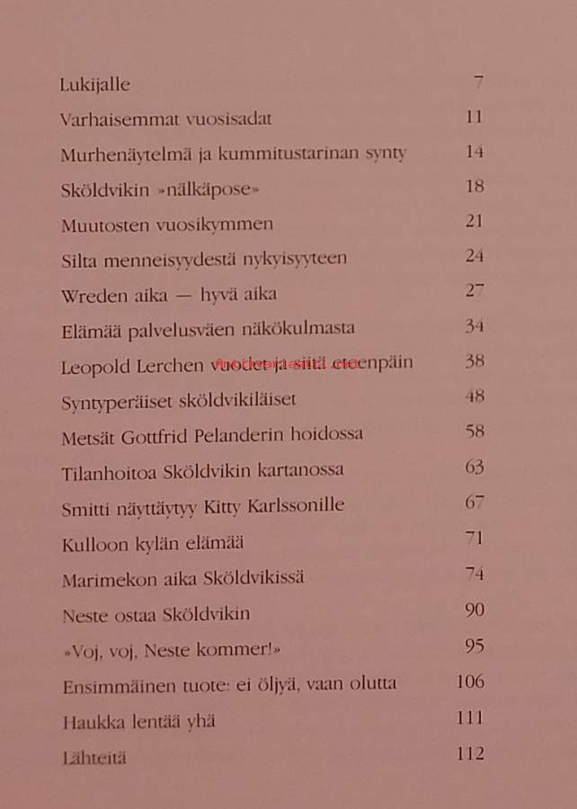 Teos on kertomus Porvoon maalaiskunnan Kulloossa, Svartbäckin selän rannalla sijaitsevasta Sköldvikistä pääosin sadan vuoden ajalta ennen Nesteen jalostamon rakentamista alkaen kuitenkin jo v. 1249. Kuvitettu. Dimensiot 25 ¤ 21 cm.