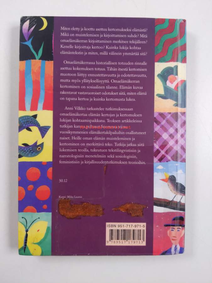 Merkinnät: omistajamerkintä (leima)Sarja: Suomalaisen Kirjallisuuden Seuran toimituksia 663Asiasanat: muistelmat, elämäkerrat, naiset, tutkimus, kokemukset, väitöskirjat, naistutkimus, elämänkaari, kerronta, elämäkertatutkimus, lukeminen, metodologia