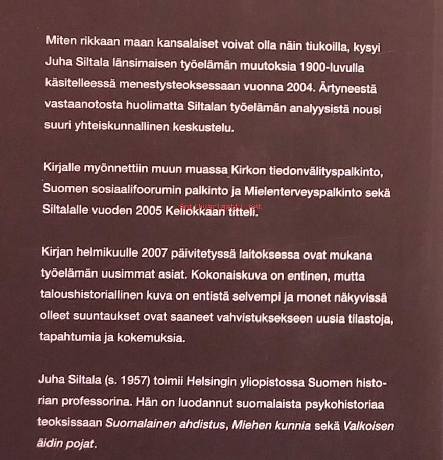 Työntekijän kannalta työelämässä on kyse vertaisuudesta muiden kanssa, työpanoksen ja korvauksen tasapainosta ja siitä, onko ulkoisten voimien uhri vai voiko vaikuttaa kohtaloonsa. Professori Juha Siltala ei tarjoa ohjelmaa positiiviseen asennemuutokseen vaan tutkittua tietoa oman aseman määrittelyyn. Dimensiot 24 ¤ 17 cm.