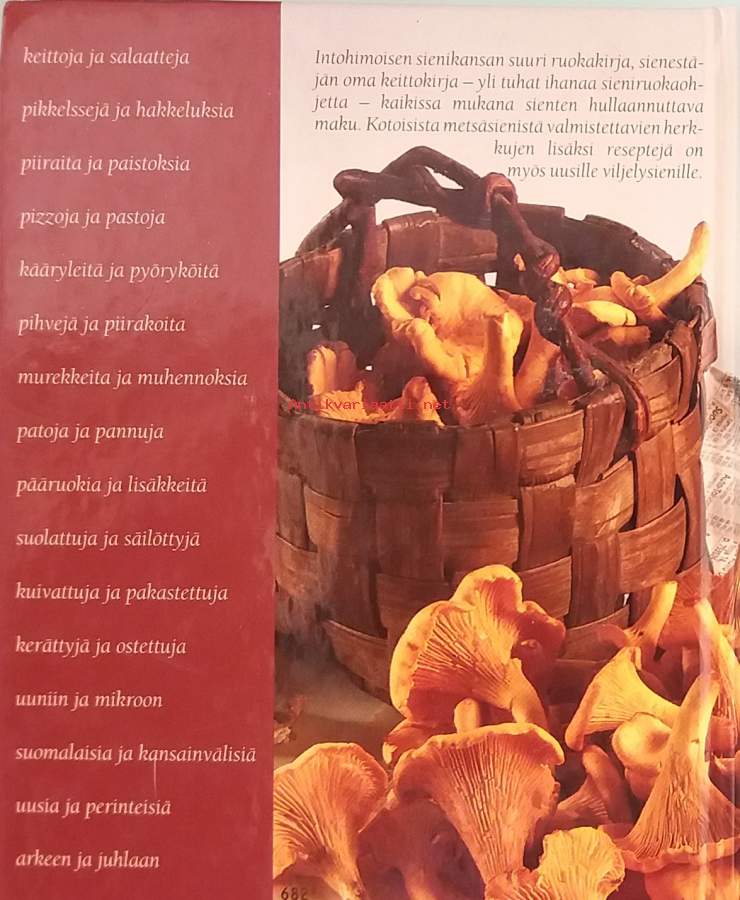 Sieniherkkujen pikkujättiläinen. Sienikansan ja sienestäjän ruokakirja - yli 1000 ihanaa sieniruokaohjetta. Kotoisista metsäsienistä valmistettavien herkkujen lisäksi on reseptejä myös uusille viljelysienille. Kuvitettu. Dimensiot 21 * 15 cm.