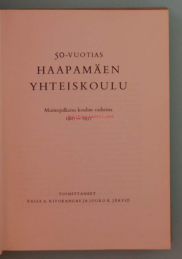 50-vuotias Haapamäen koulu - Muistojulkaisu koulun vaiheista 1907-1957. ( Koulut, historiikki )