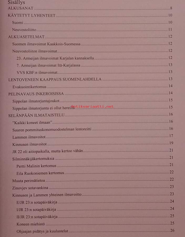 Teos sisältää 45:n Kaakkois-Suomessa ja sen lähialueella (itäinen Suomenlahti mukaan luettuna) vuonna 1941 alas ammutun, pakkolaskun tehneen tai kaapatun vihollislentokoneen tai -veneen tapauskuvaukset. Näiden tapausten yhteydessä Neuvostoliitto menetti ainakin 105 kirjassa nimeltä mainittua lentäjää, joista 87 sai surmansa ja 18 jäi vangiksi. Kuvitettu. Dimensiot 25 ¤ 18 cm.