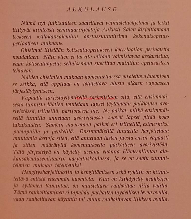 Alakansakoulun voimisteluohjelmisto - kokonaisopetusperiaatteen mukaan. ( Oppikirjat, voimistelu, 30-luku )