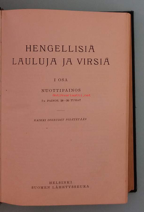 Hengellisiä lauluja ja wirsiä I-II. Yksiääninen nuottipainos. ( Musiikki, nuotit sanoituksineen, 30 luku )