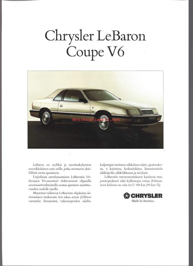 Chrysler leBaron Coupe V6 1993 - myyntiesite