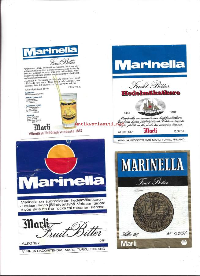 Marinella Bitter Katkero Alko nr 197 - viinaetiketti 3 eril