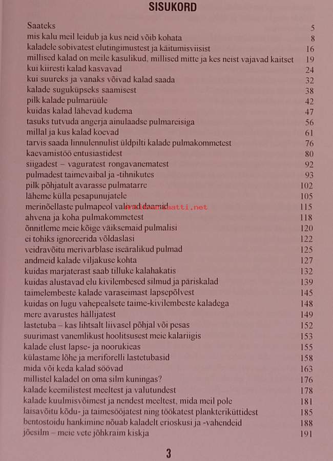 Rohkete illustratsioonidega raamatus tutvustatakse Eesti vetes elavate kalade levikut, eluviise, kasvutempot, kudemist, noorjärkude arengut, toitumist, kalade arvukuse kujunemist ja seda määravaid tegureid. Rohkesti tähelepanu on pööratud kalade kohastumisvõimele ja sellega seotud käitumise iseärasustele. Dimensiot 23 ¤ 17 cm. Kuvitettu.