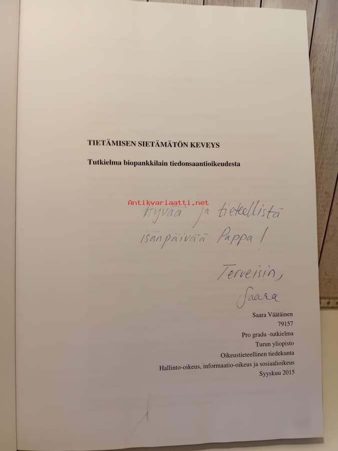Tietämisen sietämätön keveys, tutkielma biopankkilain tiedonsaantioikeudesta