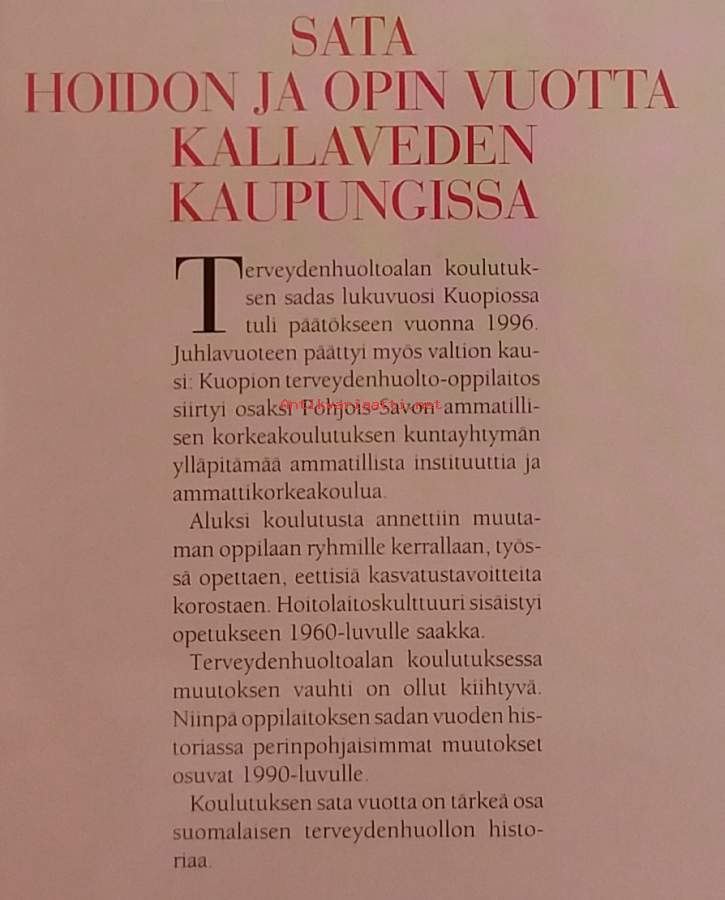 Sata hoidon ja opin vuotta Kallaveden kaupungissa 1896-1996. ( Terveydenhuoltoala, oppilaitokset, kouluhistoriikit )