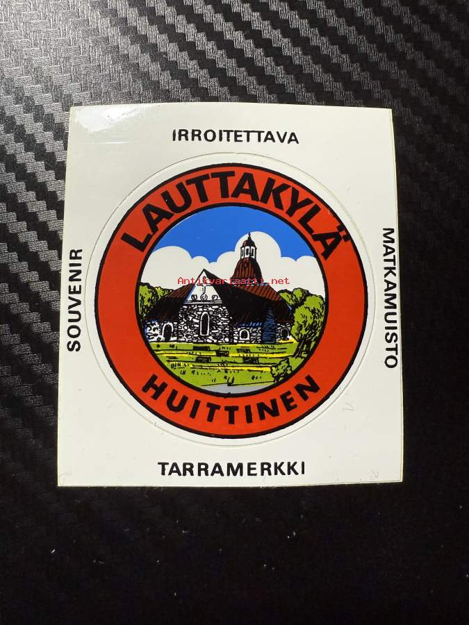 Lauttakylä Huittinen -tarra, matkamuistotarra 1970-luvulta