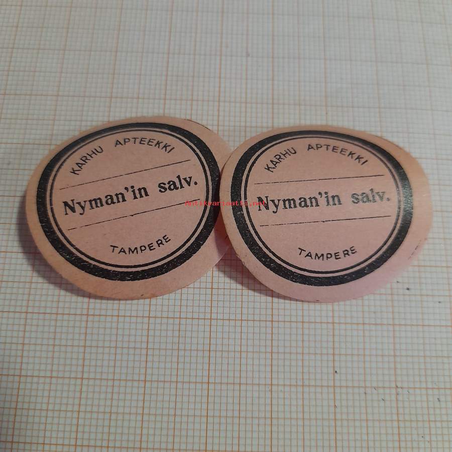 Karhu apteekki Tampere Nyman`in salva 2klp erä etiketti / tarra
