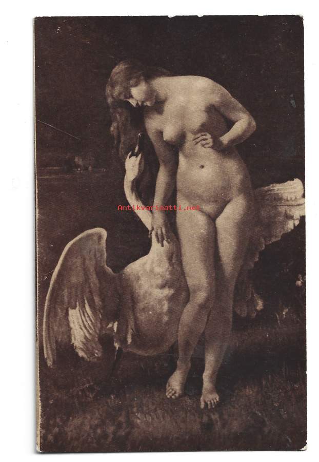 Leda ja joutsen - vanha postikortti kulkematon