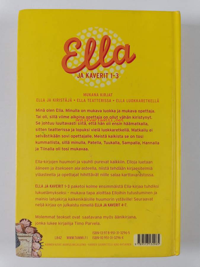 Timo Parvela Ella-setti (7 kirjaa) : Ella ja jättipotti ; Ella Lapissa ; Ella ja Paterock ; Ella aalloilla ; Varokaa lapsia ; Ella ja seitsemän törppöä ; Ella ja ...