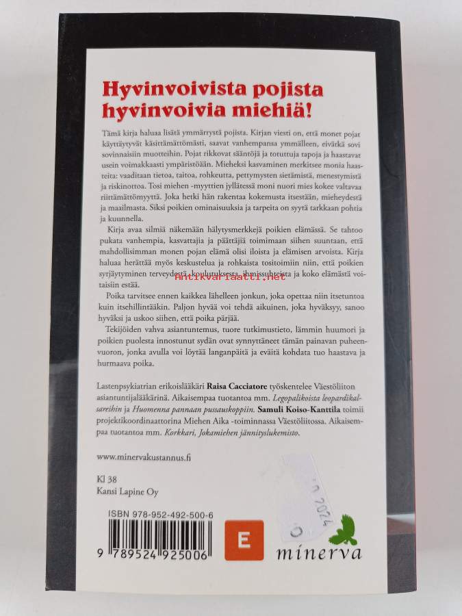 Sarja: Minerva-pokkaritAsiasanat: persoonallisuuden kehitys, itsetunto, pojat, vanhempi-lapsisuhde, lapset, sukupuoliroolit, lasten kehitys, vuorovaikutus, minäkuva, kasvatus, kasvatusoppaat