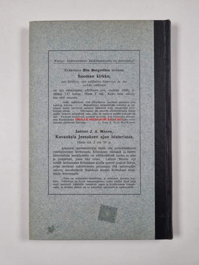 Muu(t) tekijä(t): Elis BergrothSarja: Wartijanääniä Suomen Sionista : Ewankeliumi-saarnoja 1. wihkoAsiasanat: historia, harvinaiskirjat, saarnat