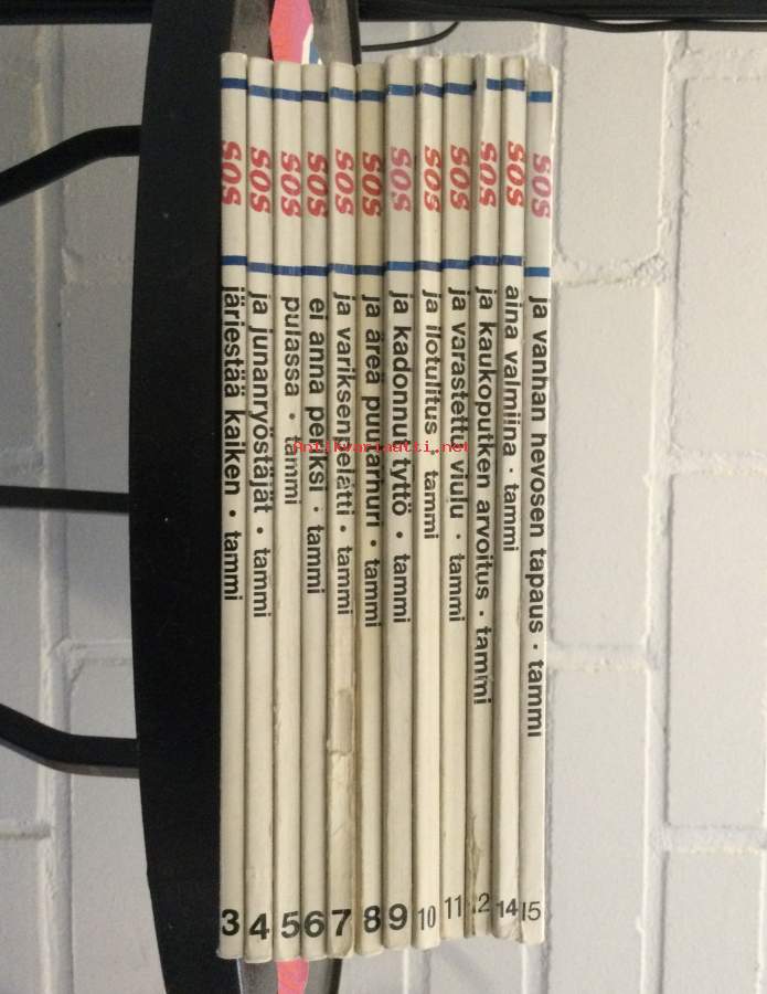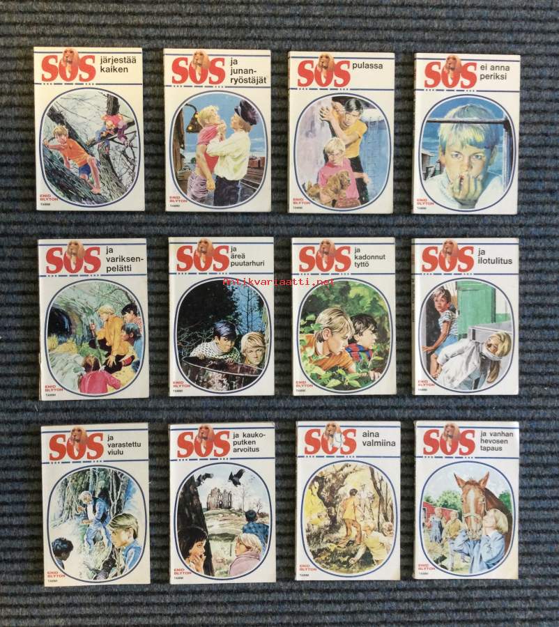 Sos.järjestää kaiken, S.ja junanryöstäjät, S.pulassa, S.ei anna periksi, S.variksenpelätti, S.ja äreä puutarhuri, S.ja kadonnut tyttö, S.ja ilotulitus, S.ja varastettu viulu, S.ja kaukoputken arvoitus, S.aina valmiina, S.ja vanhan hevosen tapaus