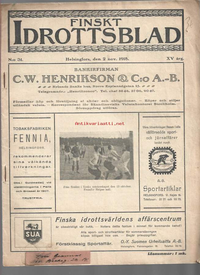 Finskt Idrottsblad 1913 nr 11 (Kansikuvitus Alexander Federley)