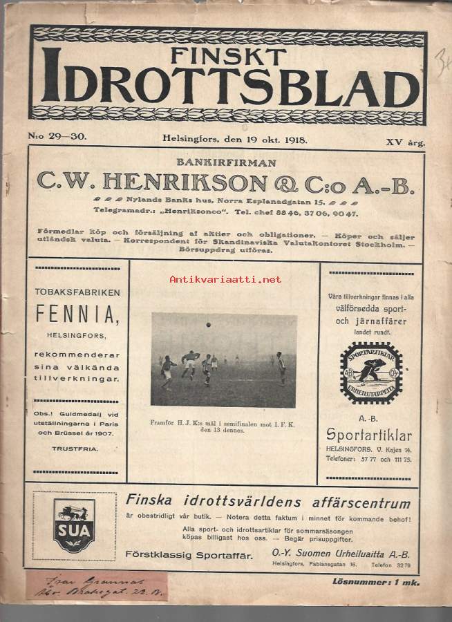 Finskt Idrottsblad 1913 nr 10 (Kansikuvitus Alexander Federley)