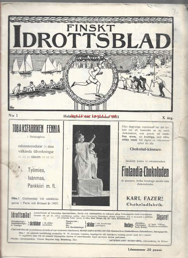 Finskt Idrottsblad 1913 nr 10 (Kansikuvitus Alexander Federley)
