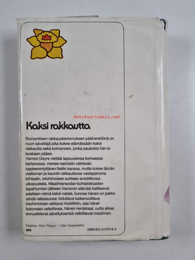 Hyvä. Tarkempi kuntoluokka: K3+ ; Hieman kolhua kansissa, selkämyksessä hieman vinoutta. Kansipaperin kunto: repeämiä/kulumaa