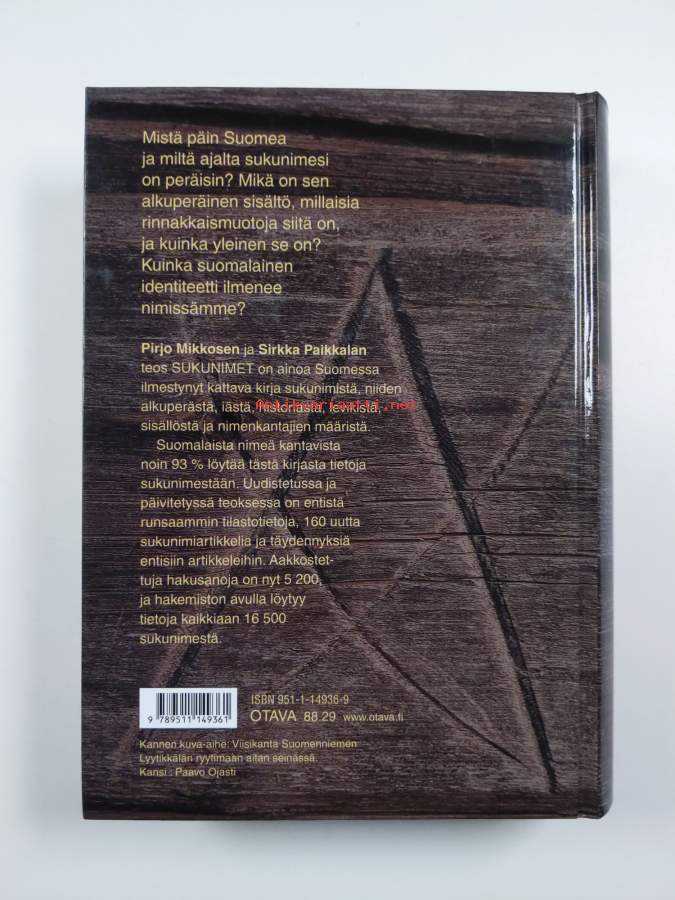 SukunimetKirjaHenkilö Mikkonen, Pirjo, ; Henkilö Paikkala, Sirkka, kirjoittaja, Otava 1992