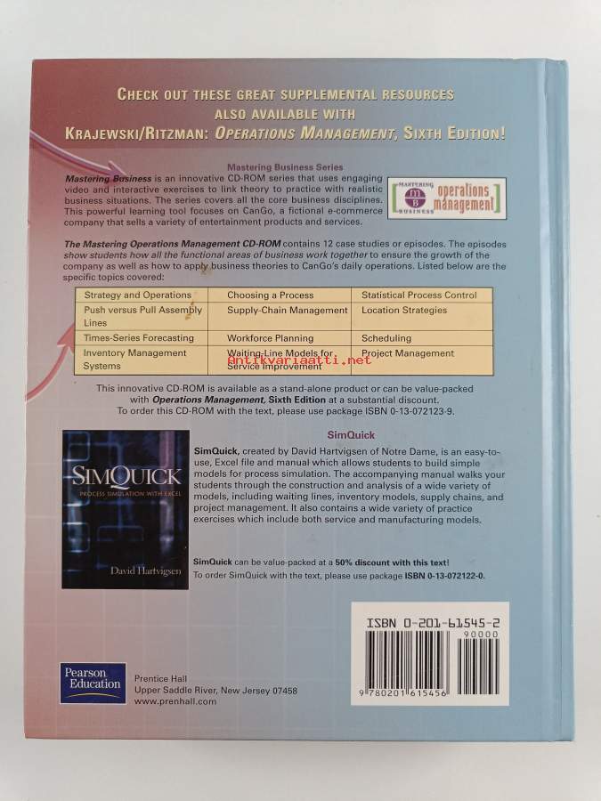 Muu(t) tekijä(t): Larry P. RitzmanAsiasanat: yritykset, yritystoiminta, johtaminen, päätöksenteko, liiketalous, organisaatio, laatu, kilpailukyky, yrityssuunnittelu, liikkeenjohto, suunnittelu, prosessit, työn organisointi, organisaatiot, tuotannonohjaus, tuotannonsuunnittelu, kauppaketjut, logistiikka, prosessijohtaminen, laatujohtaminen, tuotanto, strategiat, organisationer, kvalitet, företagsverksamhet, företag, planering, strategier, produktionsstyrning, ledarskap (verksamhetsledning), liikeyritykset, företagsledning, affärskedjor, beslutsfattande, logistik, produktion (verksamhet), konkurrenskraft, företagsekonomi (ekonomi), operaatioanalyysi, operationsanalys, kvalitetsledarskap, produktionsplanering, processer, processledning, företagsplanering, tuotantokyky, Production management, produktionskapacitet