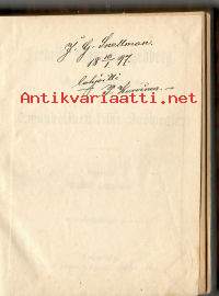 Etulehdellä on tekijän omakätinen omiste J. G. Snellmanille v. 1897.