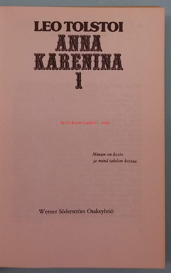 Anna Karenina, naimisissa oleva aristokraatti, rakastuu kreivi Vronskiin, mikä johtaa hänen sosiaaliseen eristymiseensä ja lopulta traagiseen kohtaloon. Dimensiot 20 ¤ 14 cm.