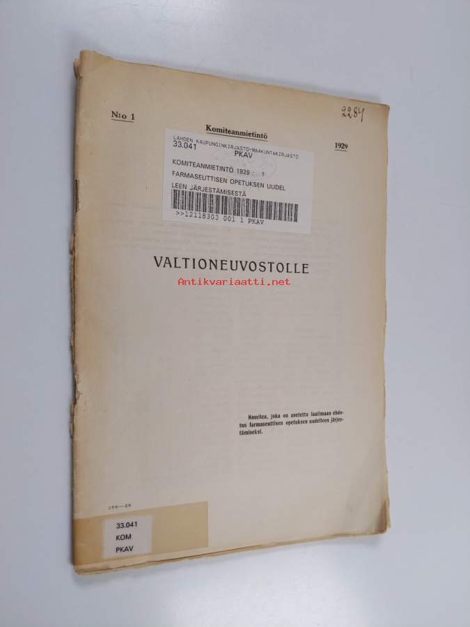 Merkinnät: omistajamerkintä (leima)Sarja: Komiteanmietintö 1929:1
