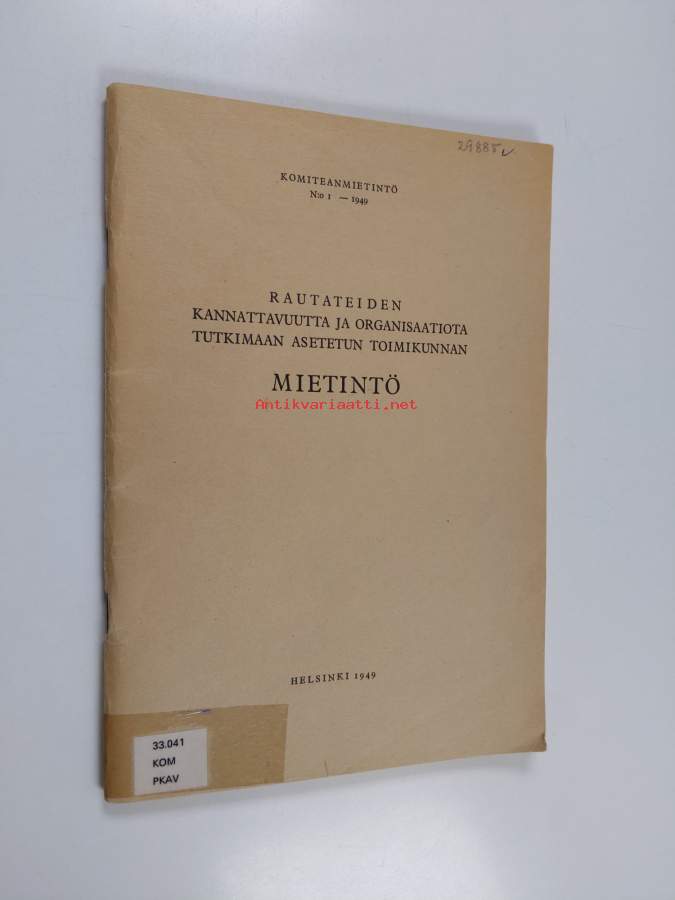 Merkinnät: omistajamerkintä (tarra)Sarja: Komiteanmietintö 1/1949