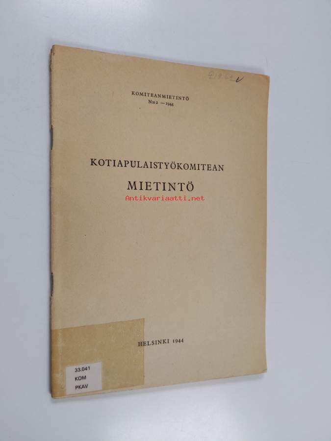 Merkinnät: omistajamerkintä (leima)Sarja: Komiteanmietintö 1944:2Asiasanat: kotiapulaiset