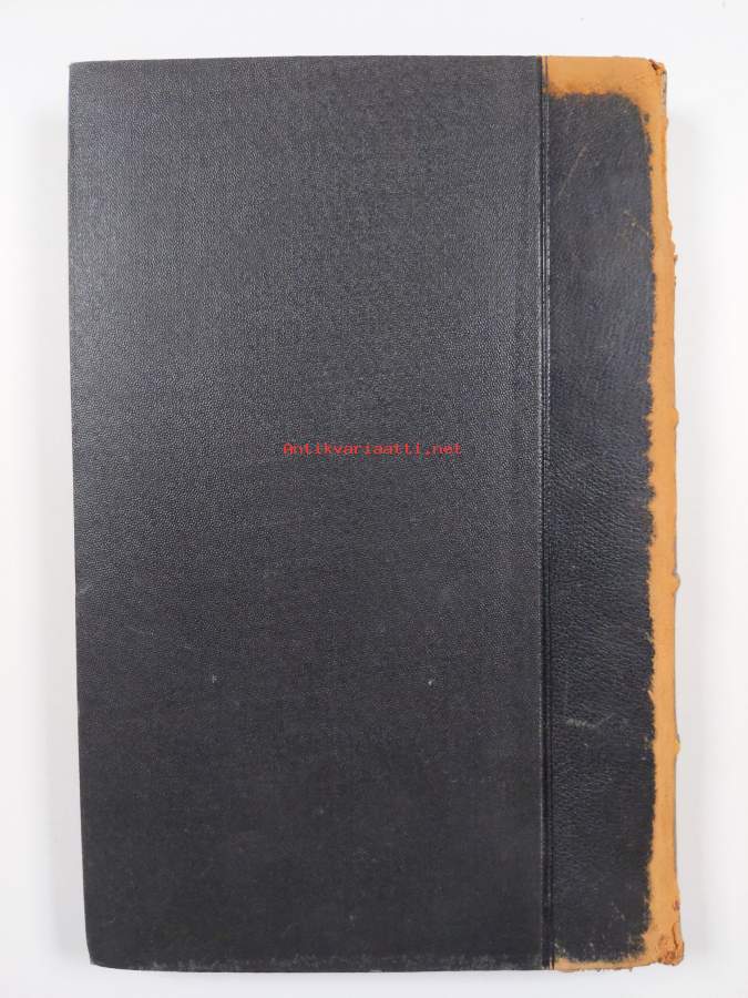 Tyydyttävä. Tarkempi kuntoluokka: K2- ; Jonkin verran kulumaa kansissa, hieman repeämää selkämyksessä. selkämyksen yläreunasta puuttuu palanen ; etukannessa kultakirjaimin kirjan omistajan nimikirjaimet