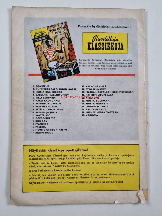 Tyydyttävä. Pientä taitejälkeä kansissa, hieman kulumaa, hieman nuhruisuutta, selkämyksessä hieman vinoutta. etukannen alakulmasta puuttuu pieni pala