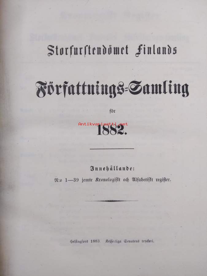 Storfurstendömet Finlands författnings-samling för 1882 - Finlands författningssamling 1882