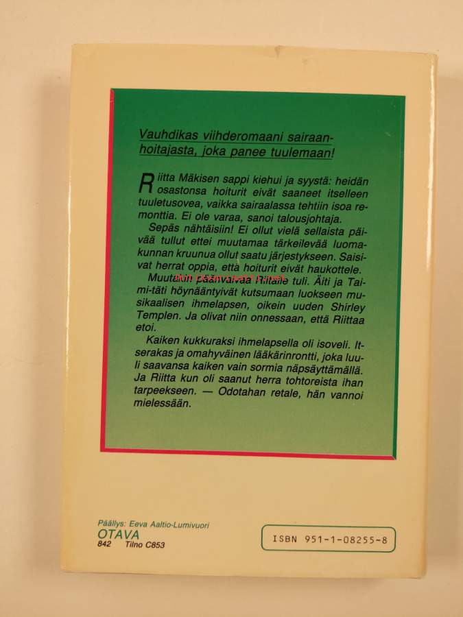 Hyvä. Hieman kulumaa kansissa, sidos hieman näkyvissä yhdellä aukeamalla. Kansipaperin kunto: jonkin verran kulumaa/pienoisia repeämiä