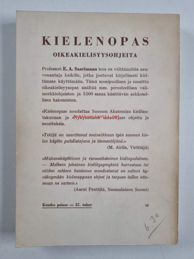 Hyvä. Hieman taitejälkeä, hieman nuhruisuutta. etukannen sisäpuolella puoliksi repeytynyt exlibris