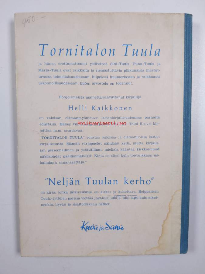 Hyvä. Tarkempi kuntoluokka: K3+ ; Hieman kulumaa kansissa, selkämyksessä aavistus vinoutta