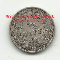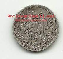 Saksa - 1/2 Mark 1907 A - kolikko hopeaa 0.900